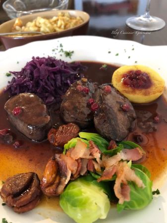 La garniture chasse était comme il se doit maison. Les choux bruxelles étaient frais et leurs cuissons parfaites et surtout bien vert. Ils étaient agrémentés de petits lardons juste revenus.